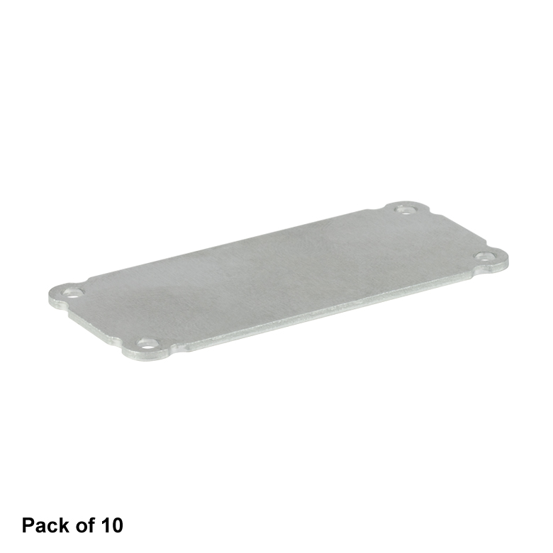 Комплект EEBEP10 включает десять торцевых пластин для миниатюрных корпусов под электронные узлы шириной 1.00 дюйм и высотой 2.25 дюйма. Деталь закрывает торец корпуса без установки разъемов, поэтому ее используют в случаях, когда нужно оставить глухую стенку, защитить внутреннюю плату от механического контакта и исключить лишние отверстия в конструкции. Такой формат удобен при выпуске приборов с внутренним подключением, когда кабели выводятся только с одной стороны или проходят через отдельную лицевую панель.