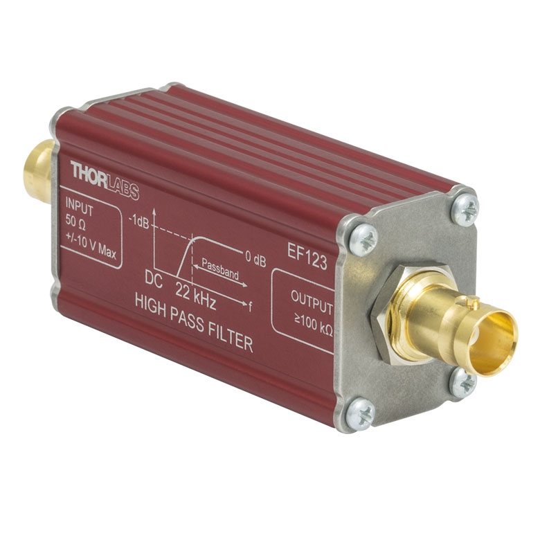 EF123 - Пассивный электрический фильтр высоких частот, полоса пропускания: >22 кГц, 2 гнездовых BNC разъема, Thorlabs