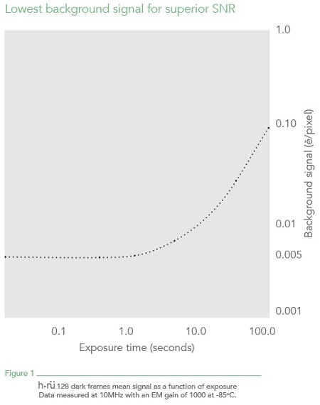 - минимальные уровни индуцированных синхроимпульсами зарядов (CIC) – максимальное отношение сигнал/шум в результате снижения CIC, основного источника шума EMCCD камер;