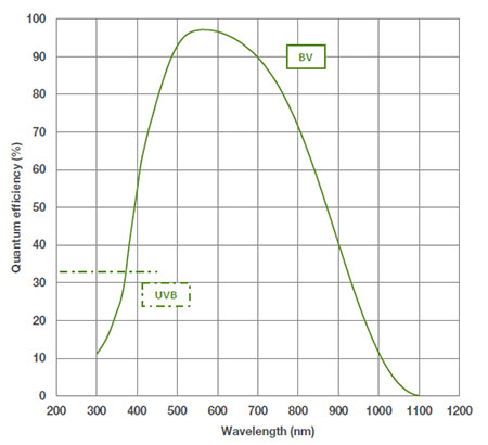Высокая квантовой эффективности в широком спектральном диапазоне, по сравнению со стандартными сенсорами с обратной засветкой. |