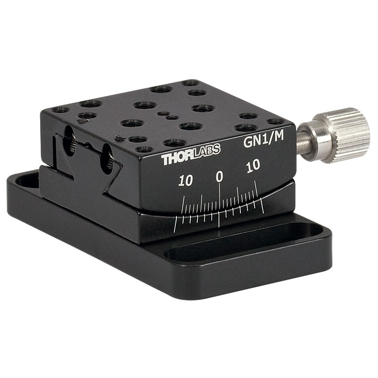 GN1/M Thorlabs — компактный гониометр с расстоянием 25,4 мм до точки вращения и диапазоном ±10°, предназначенный для точной юстировки оптики и образцов.
