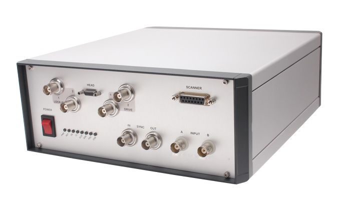 Электронный контроллер 8NSC предназначен для управления пьезопозиционерами серии 8NTS. Контроллер SPM 8NSC-3061 содержит 2-х канальный синхронный усилитель для обеспечения резонансных SPM методов, например бесконтактный SPM режим. Синхронный усилитель включает в себя высокостабильный тахометрический генератор на основе цифрового синтезатора частот. Высокоскоростная обработка данных осуществляется с использованием программируемой логики (FPGA). Это позволяет осуществлять высококачественное синхронное детектирование до полосы 1.5 МГц. 8NSC-3061 может управлять 9 пьезотрансляторами и максимум 4-мя трансляторами с шаговыми двигателями с возможностью деления шага, например, для грубой регулировки сканирующей головки. 8NSC-1000 может контролировать 3 пьезотранслятора. Программное обеспечение: Nspec, SDK для Windows, Linux, Mac OS, Android для планшета.