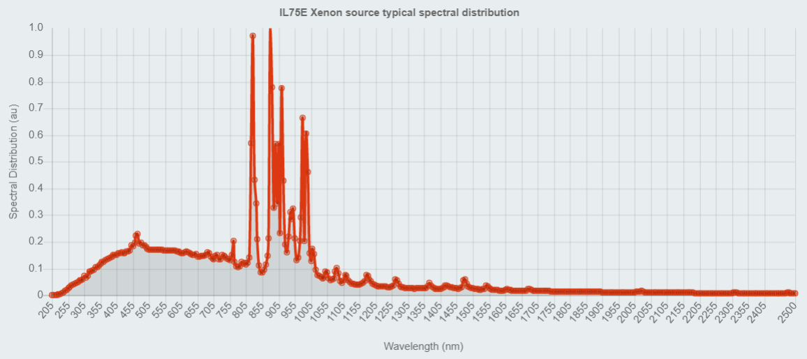 Ксеноновый источник света IL75E Bentham обеспечивает высокую яркость излучение в диапазоне от УФ до ближнего ИК-диапазона.