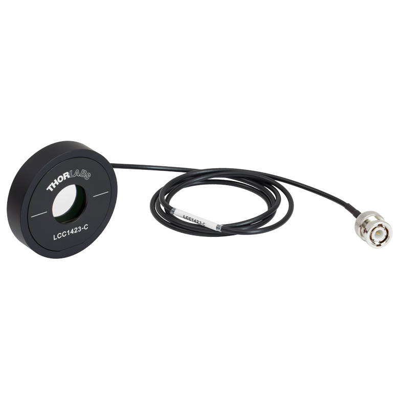 LCC1423-C — переменная жидкокристаллическая фазовая пластинка (LCVR) с апертурой Ø20 мм и просветляющим покрытием 1050 - 1700 нм. В отличие от «фиксированных» волновых пластинок, здесь фазовая задержка регулируется электрическим сигналом: вы меняете напряжение и получаете нужную ретардацию/поляризационное преобразование без механического вращения.