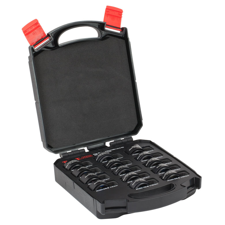 В набор входят линзы из материала — диаметром Ø1". В зависимости от комплектации могут присутствовать плоско-выпуклые, плоско-вогнутые, двояковыпуклые и двояковогнутые линзы, что удобно для построения объективов, расширителей пучка и тестовых стендов.