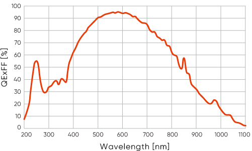 - Квантовая эффективность 95% при 580 нм;