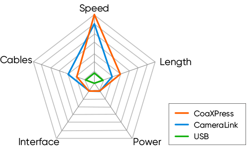 CoaXPress является ведущим в мире стандартом интерфейса для высокоскоростной визуализации и обеспечивает очень высокую скорость, точность и простоту передачи данных, а также большую длину коаксиального кабеля.