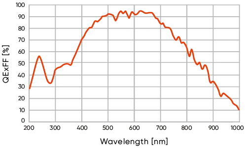 Благодаря высочайшей чувствительности можно захватывать самые слабые сигналы, когда это необходимо. Крупные пиксели размером 11 мкм улавливают почти в 3 раза больше света, чем стандартные пиксели размером 6.5 мкм, что в сочетании с почти идеальной квантовой эффективностью обеспечивает максимальное обнаружение фотонов. Затем электроника с низким уровнем шума обеспечивает высокое отношение сигнал/шум даже при низком уровне сигнала.