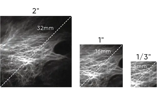 Массивный сенсор с диагональю 32 мм обеспечивает фантастическую эффективность изображения. Большое количество пикселей и большой размер сенсора улучшают пропускную способность данных, точность распознавания и обеспечивают дополнительный контекст для изображений. Для визуализации на основе объектива микроскопа можно зафиксировать все, что может предоставить оптическая система, и просмотреть весь образец за один снимок.