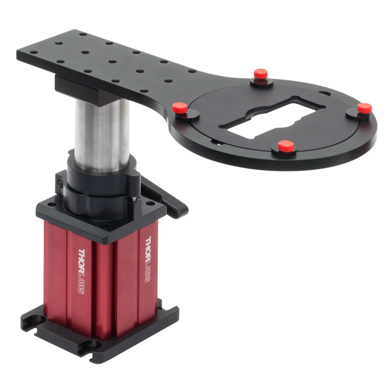 MP100-RCH2 – вариант штатива MP100, комплектуемый держателем для предметных стекол. В отличие от универсальной плиты или прямоугольного паза, здесь упор сделан на удобную и точную фиксацию стандартных стекол 26 × 76 мм (или близких форматов). Держатель обычно имеет пружинный прижим или зажимную рамку, что позволяет быстро устанавливать, вынимать и менять стекла, не опасаясь их смещения при работе. Регулируемая высота 148.1 – 208.5 мм даёт возможность подвести стекло в фокус микроскопа или в область наилучшей чувствительности детектора в оптическом тракте.