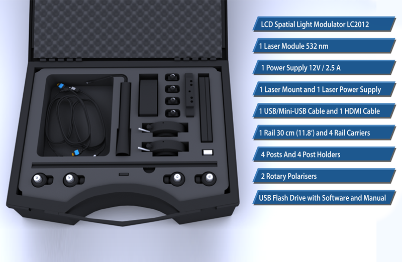 OptiXplorer - учебный набор от компании HOLOEYE для начальных и продвинутых лабораторных курсов по оптической физике. Основными темами, охваченными в шести экспериментальных модулях, являются: поляризационные эффекты, амплитудная модуляция, фазовая модуляция и Фурье-оптика.