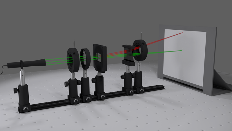 Программное обеспечение «OptiXplorer» используется для генерации динамических линз и призм для пользовательских сигналов с использованием алгоритма IFTA. Используя матрицы ABCD, измерения положений оптических элементов и расстояний до плоскости дифракции Фраунгофера можно сравнить с теоретическими расчетами. Наложенные функции линзы и призмы используются для перемещения шаблона дальнего поля в пространстве и пространственного отделения его от недифрагированного света, тем самым обеспечивая эффективное введение в принципы оптики Фурье.