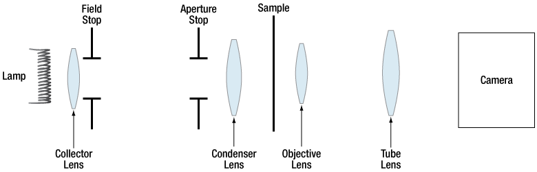 Затем набор проводит студентов через настройку управляемого освещения Келера, чтобы обеспечить яркое, равномерное освещение образца. Учащиеся изучают, как можно настроить каждый компонент системы для изменения результирующего изображения, включая угол освещения и числовую апертуру объектива. Они также узнают о сопряженных плоскостях и о том, где образуются изображения в системе микроскопа.