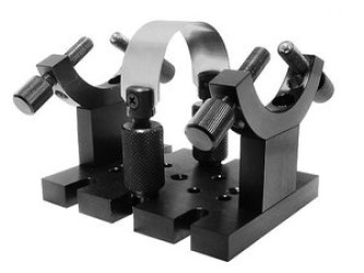 Используется для крепления с высокой повторяемостью положения и безлюфтового позиционирования лазерных головок и других цилиндрических объектов. Опоры оправы можно легко переставить, чтобы выбрать наилучшее их размещение для крепления цилиндрических объектов различных длин (основания 25, 50 или 70 мм). Оправа изготовлена из алюминия с черным анодированным покрытием и оснащен 6.4 мм сквозными щелями и отверстиями M6 для крепления к столам и плитам Standa.