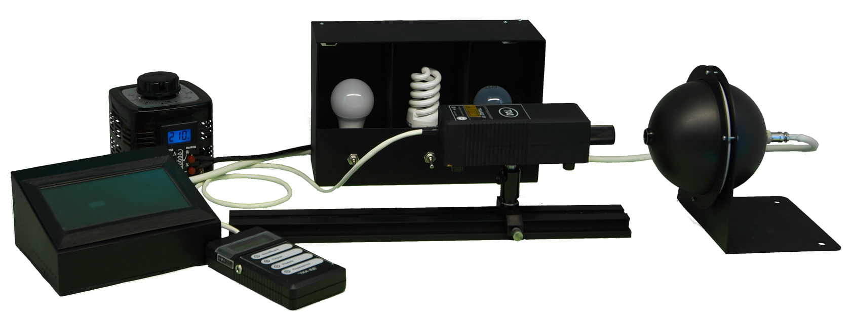 - Интегрирующая сфера IS140; - Набор источников света (светодиоды, лазеры, люминесцентная лампа, лампа накаливая и др.); - Автотрансформатор; |