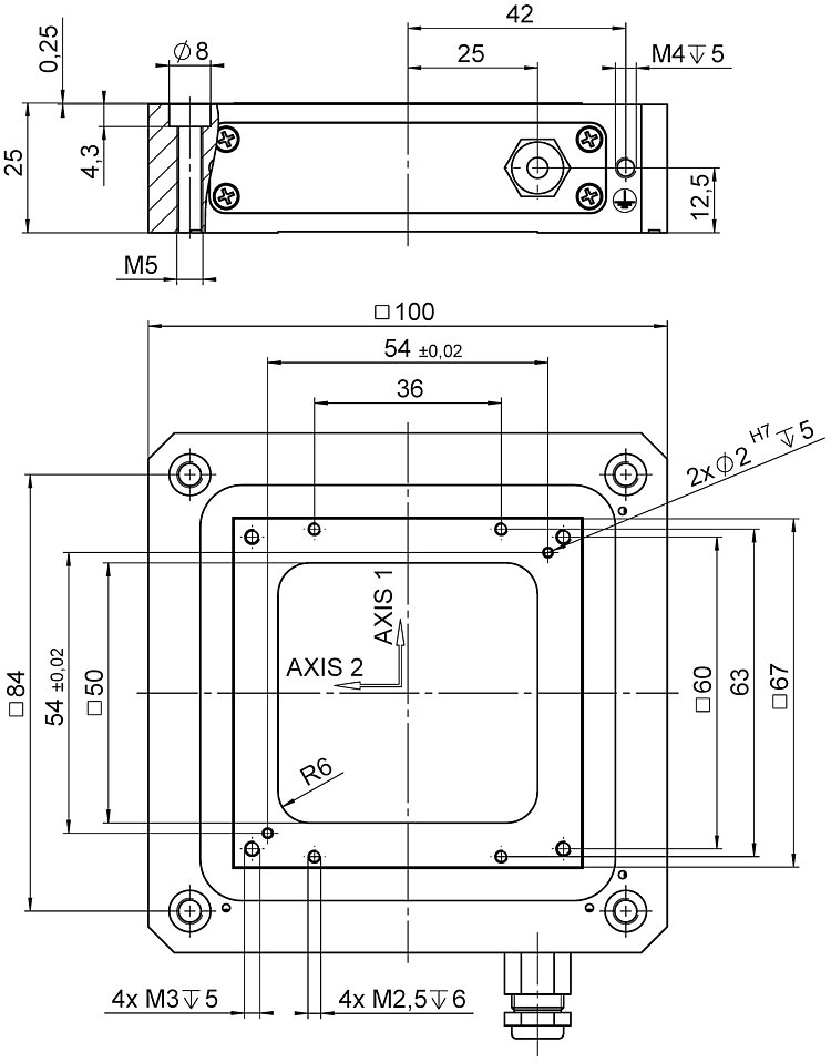 Пьезоплатформы серии P-733 представлены несколькими моделями, обеспечивающими перемещение по координатам XY, XYZ на дистанции (в режиме с обратной связью) до 100 мкм. Апертура размером 50 х 50 мм позволяет использовать платформы во многих задачах нанопозиционирования, требующих прохождения света через подвижный элемент. Все модели серии P-733 оборудованы ёмкостными датчиками обратной связи. Измерение перемещения при помощи ёмкостных датчиков осуществляется без физического контакта, что позволяет избежать трения. Отсутствие гистерезиса, субнанометровое разрешение и высокая линейность делают ёмкостные датчики отличным инструментом для реализации обратной связи. Платформы серии P-733 относятся к системам параллельной кинематики, в которых все встроенные в платформу пьезоактуаторы воздействуют на одну подвижную часть платформы. Использование в многокоординатной платформе только одной движущейся части позволяет минимизировать перемещаемую массу и тем самым улучшить динамические характеристики.