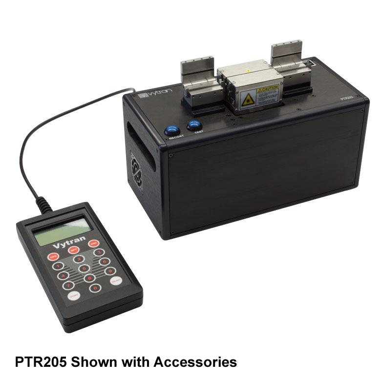 PTR205 представляет собой автоматизированную систему восстановления защитного покрытия (рекоатер) оптических волокон, оснащенную пневматическим механизмом для открытия и закрытия разъемной формы (mold). Пневматический привод обеспечивает мягкое, равномерное и строго параллельное смыкание створок формы, что исключает риск микроизгибов или повреждения хрупкого участка сварки. Система автоматически дозирует акрилатный полимер и отверждает его с помощью УФ-излучения, восстанавливая механическую гибкость и прочность волокна до уровня оригинального заводского покрытия.
