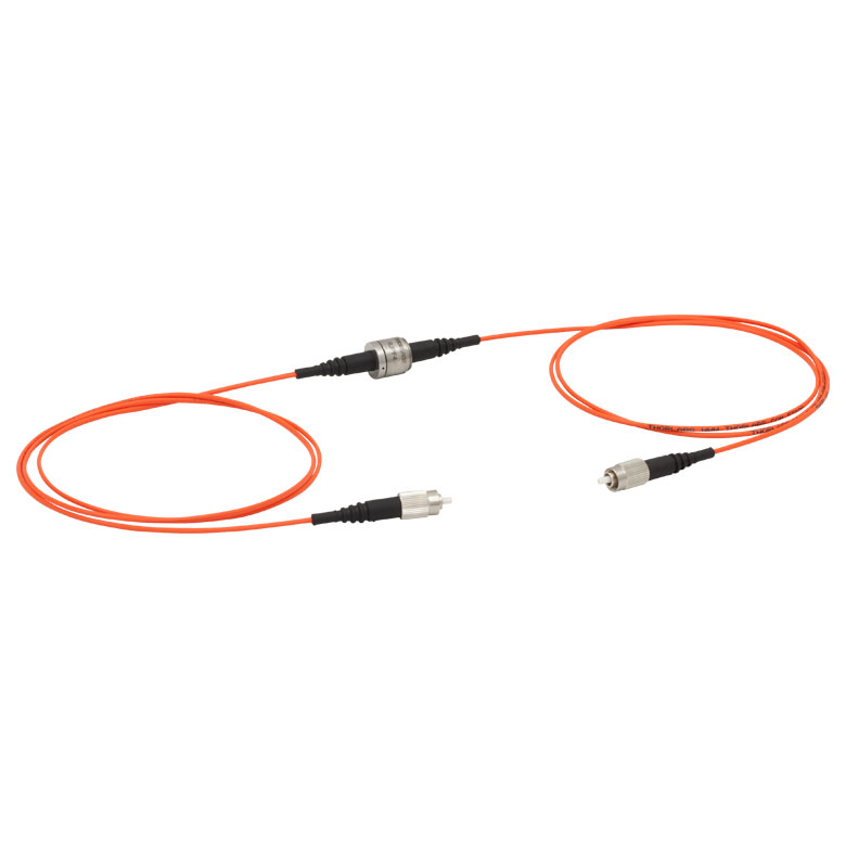 RJPF4 является оптическим патч-кордом со встроенным вращающимся сочленением (Rotary Joint), предотвращающим скручивание кабеля при вращении системы. В отличие от модели RJPF2, этот двухметровый кабель построен на базе многомодового волокна с очень широкой сердцевиной Ø400 мкм (и числовой апертурой 0.39 NA), что позволяет передавать оптическое излучение существенно большей мощности. Кабель оконцован разъемами FC/PC. Основное назначение — сложные эксперименты по оптогенетике in vivo с использованием мощных LED или лазерных источников, а также промышленные системы, где требуется передача света на вращающиеся механизмы.