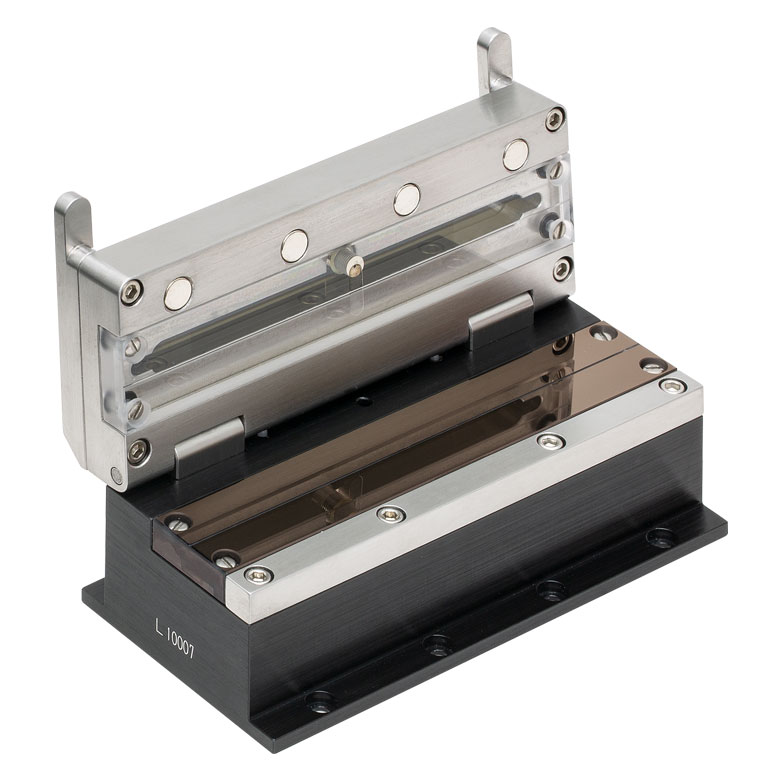 Форма для покрытия волокон оболочкой RM430UVL является сменным компонентом для систем восстановления акрилатного покрытия (recoaters) Thorlabs серии PTR/Vytran. Характеристики формы: с УФ светодиодами, диаметр оболочки: Ø430 мкм, макс. длина покрытия: 100 мм. Прецизионно отполированные кварцевые пластины гарантируют создание идеально ровного, безоболочечного слоя полимера вокруг оголенного участка волокна после сварки, восстанавливая его первоначальный диаметр и механическую прочность.