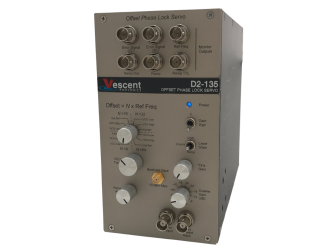 Сервопривод фазовой синхронизации со смещением D2-135 (OPLS) предназначен для точного управления и быстрой регулировки расстройки частоты между ведущим и ведомым лазером. В сочетании с гетеродинным модулем D2-250 и детектором биений D2-260 D2-135 образует полноценную систему фиксации смещения. D2-250 перекрывает главный и подчиненный лазеры в свободном пространстве, чтобы генерировать оптическую ноту ритма. Затем он запускает ноту бита в волокно для доставки на D2-260, где она преобразуется с понижением частоты в RF, а затем доставляется на D2-135 для обработки.