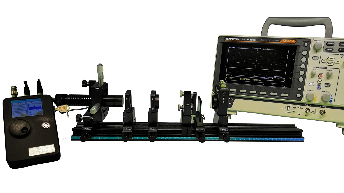 - Фотодетектор в держателе, 1 шт; - Осциллограф цифровой, 100 МГц, 2 канала, 1 шт; - Светофильтр, 1 шт; - Юстировочная мишень, 2 шт; - Набор для чистки оптики, 1 шт; - Описание работы, 1 шт; - Упаковочный кейс с ложементом, 1 шт. |