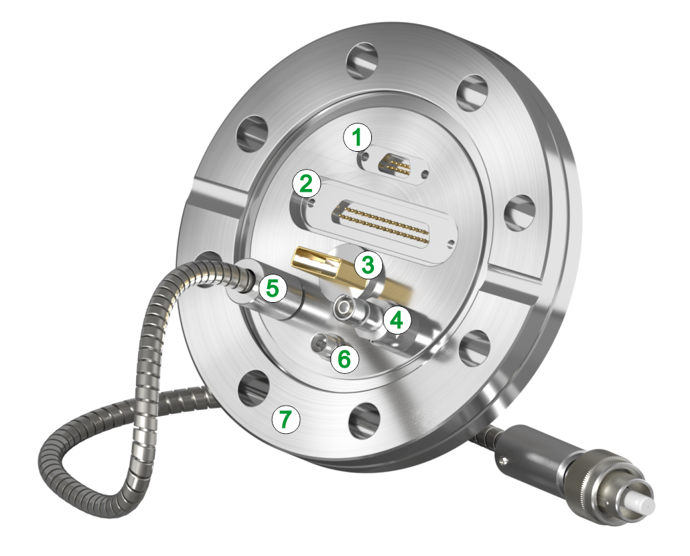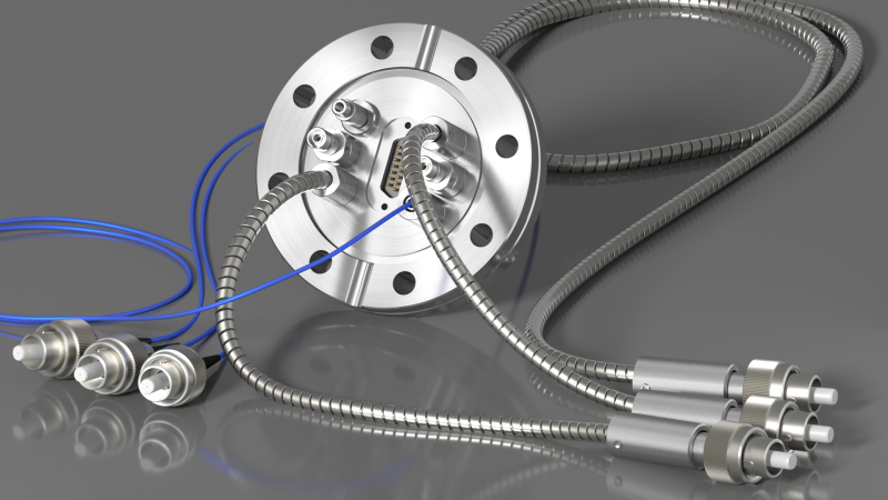 Гибридные вакуумные выводы – это оптико-механические компоненты, которые предлагают несколько интерфейсов электрических и / или оптоволоконных соединителей на одном общем фланце. Все соединители герметично закрыты во фланце, и компонент в целом предназначен для работы в высоком и сверхвысоком вакууме, в т. ч. среды с широким диапазоном температур окружающей среды. Количество и тип интерфейсов могут быть адаптированы к требованиям заказчика.