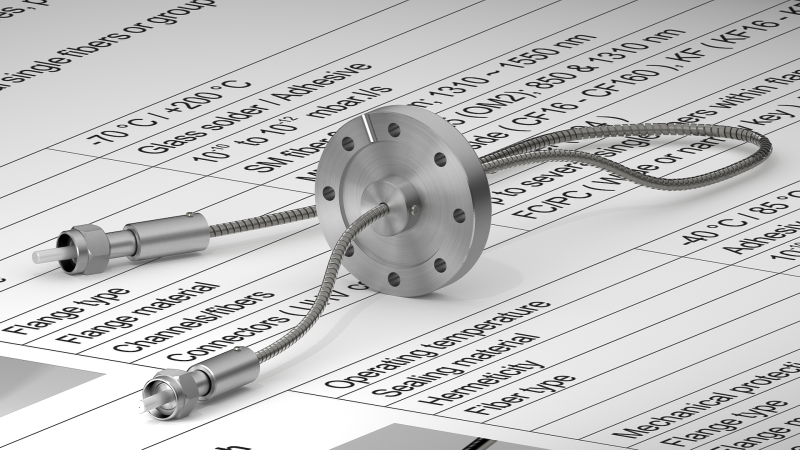 Особенности:- Многие виды уплотнительных материалов (стекло, клей); - Одномодовое или многомодовое волокно; - Многие типы фланцев (KF, CF, индивидуальные требования); - Множество типов разъемов (FC / PC, FC / APC, SMA905,…). |