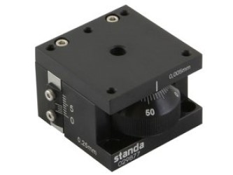 Вертикальный транслятор из алюминия на шарикоподшипнике 7VT174-5 выполнен в самой компактной конфигурации. На платформе имеется одно центральное отверстие М6 и пять отверстий М3 для соединения с трансляторами 174 и 184 серий, а также с другими объектами. Шкала Вернье выгравирована на одной из сторон транслятора, а фиксация положения производится на противоположной стороне. Диапазон перемещения 5 мм. Два сквозных отверстия для винтов М3 выполнены в основании транслятора для установки на любых подходящих для этого поверхностях, например, на линейном трансляторе 7T184-13. 7VT174 может быть закреплён на стержне 3MP через отверстие М6, расположенное на нижней поверхности транслятора.