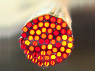 Компания art photonics поставляет жгуты из кварцевых оптических волокон с медным покрытием, которые позволяют объединять излучение от более чем 100 диодных лазеров мощностью до 30 Вт каждый. В результате на выходе можно получать излучение мощностью до 3 кВт. Металлическое покрытие кварцевых волокон обеспечивает распределение тепла вдоль волокна и служит теплоотводом.