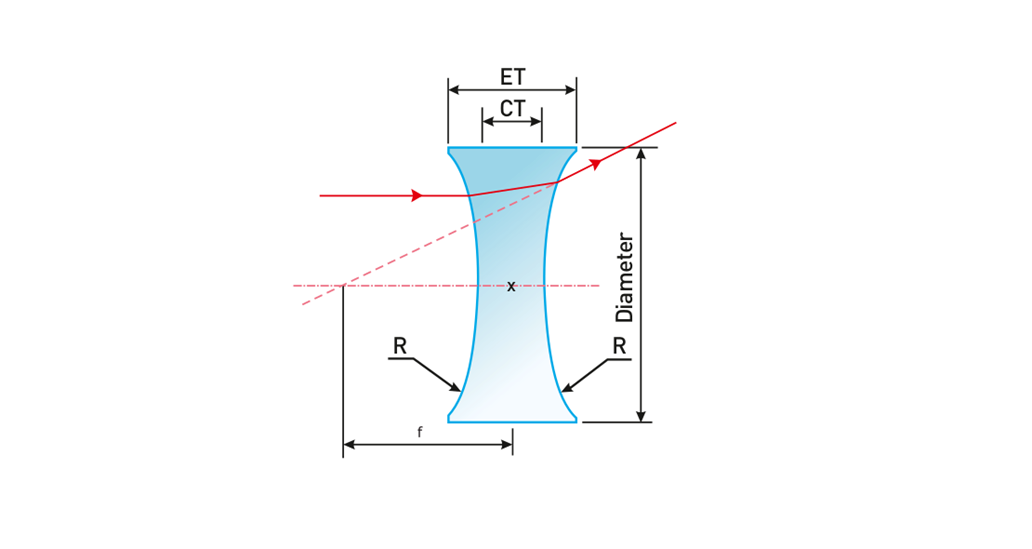Двояковогнутые сферические линзы имеют две сферические вогнутые поверхности с одинаковым радиусом кривизны, их фокусное расстояние отрицательно. Производительность этих линз наилучшая, когда они используются для приложений с 0.2X - 5X, чаще всего для разведения сходящегося пучка.