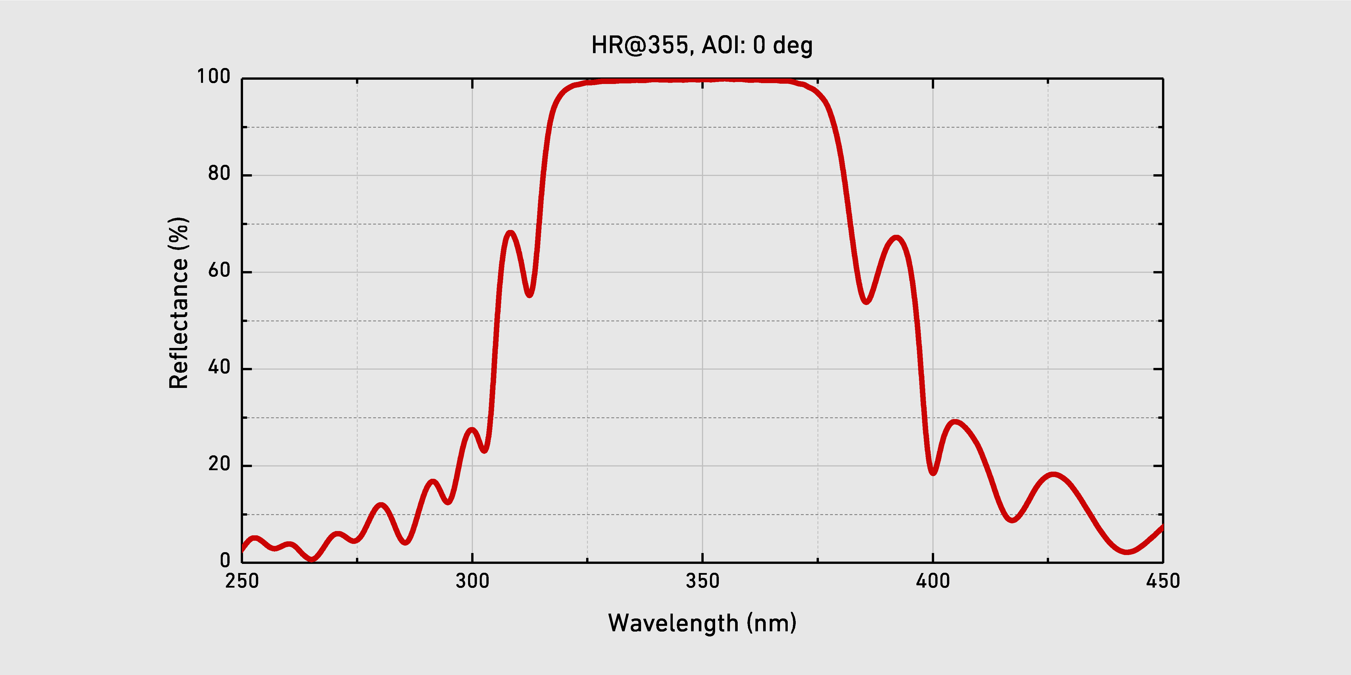 Зеркала для работы с лазерами демонстрируют высокий коэффициент отражения в спектральном диапазоне в пределах 10% от центральной длины волны при определенном угле падения и поляризации при угле падения, отличного от нормального. Свойства отражения обеспечиваются за счет оптических интерференционных явлений отражения от множества диэлектрических тонкопленочных слоев, которые наносятся на оптическую подложку из плавленого кварца (UVFS).