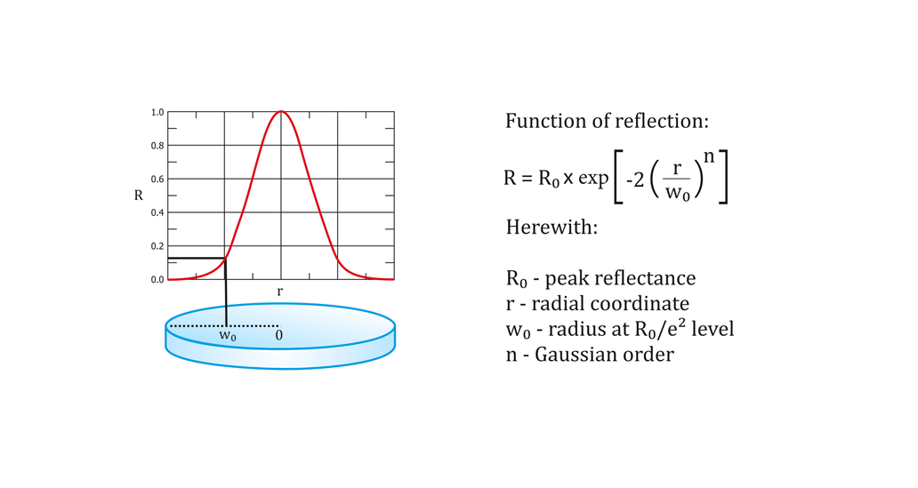 Зеркала с переменным коэффициентом отражения компании Optogama имеютосесимметричный профиль коэффициента отражения, соответствующий супергауссовой функцией 2 порядка. Эти зеркала отлично подходят для работы в мощных нестабильных лазерных резонаторах благодаря их широкому заполнению активной среды и слабой дифракции на апертуре. Следовательно, супергауссовские зеркала с переменным коэффициентом отражения способствуют лучшему качеству ближнего и дальнего поля. Стоит отметить, что зеркала с переменной отражательной способностью могут иметь различные профили отражения, например, линейные, параболические, гауссовские.