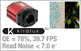Камеры Thorlabs Kiralux™ со CMOS сенсорами обеспечивают чрезвычайно низкий уровень шума при считывании и высокую чувствительность для приложений с высоким уровнем требований к качеству изображений. Компактный корпус был разработан для обеспечения пассивной терморегуляции сенсора, уменьшая темновой ток без необходимости использования охлаждающего вентилятора или термоэлектрического охладителя. Эти особенности делают компактные научные камеры Thorlabs идеальными для съемки при слабом освещении в таких применениях как флуоресцентная микроскопия. Кадровый затвор одновременно сканирует все поле зрения, позволяя получать изображения быстро движущихся объектов.