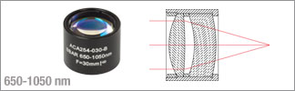 ACA254-030-B - Ахроматический дублет с воздушной прослойкой, просветляющее покрытие: 650-1050 нм, фокусное расстояние: 30 мм, Thorlabs