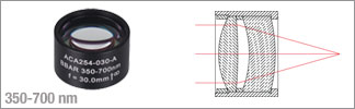 ACA254-030-A - Ахроматический дублет с воздушной прослойкой, просветляющее покрытие: 350-700 нм, фокусное расстояние: 30 мм, Thorlabs