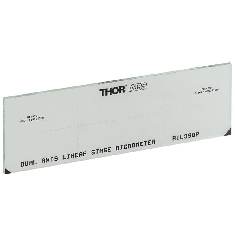 R1L3S8P - Калибровочная мишень с концентрическими квадратами и микрометрической шкалой, 3" x 1", материал: известково-натриевое стекло, Thorlabs