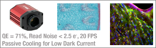 Компактные научные камеры Thorlabs со CMOS-сенсорами обеспечивают чрезвычайно низкий уровень шума и высокую чувствительность для приложений визуализации с высокими требованиями к качеству изображений. Компактный корпус спроектирован таким образом, чтобы обеспечить пассивное управление температурой датчика, уменьшая темный ток без использования охлаждающего вентилятора или термоэлектрического охладителя. Эти функции делают компактные научные камеры Thorlabs идеальным инструментом для приложений с низким освещением, таких как флуоресцентная микроскопия. Кадровый затвор одновременно сканирует все поле зрения, что позволяет визуализировать быстро движущиеся объекты.