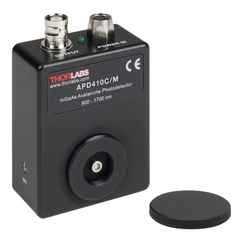 APD410C/M - Детектор на лавинном фотодиоде (InGaAs), регулировка усиления, температурная компенсация, источник питания, рабочий диапазон: 900 - 1700 нм, выходной сигнал: DC - 10 МГц, крепления M4, Thorlabs