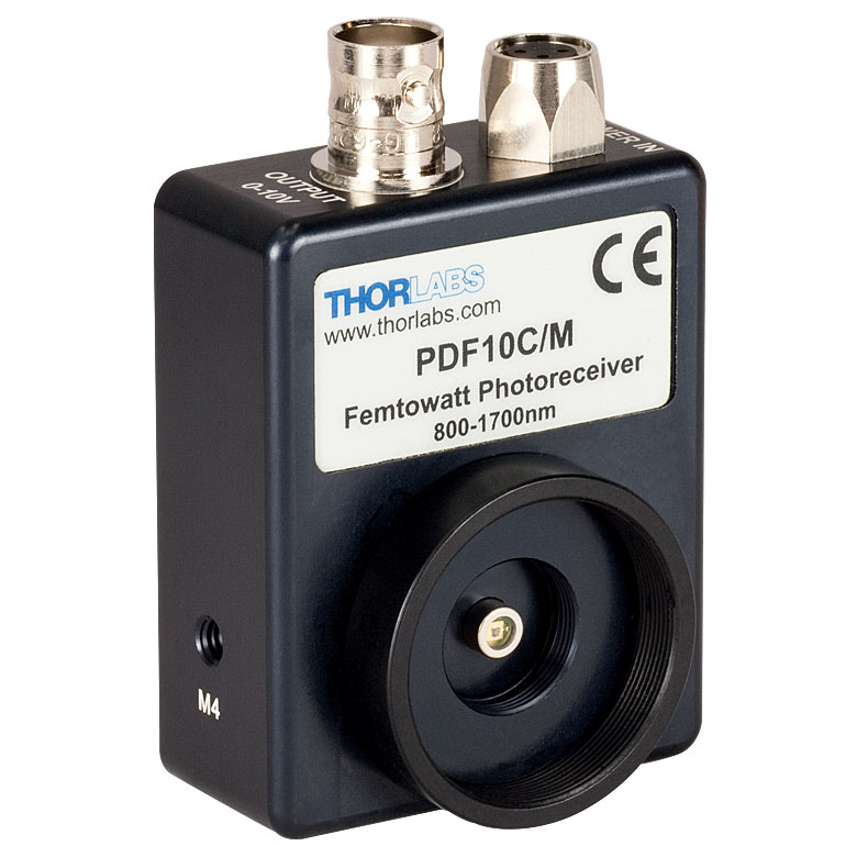 PDF10C/M - InGaAs фотодетектор с усилителем, рабочий спектральный диапазон: 800-1700 нм, ширина полосы пропускания: 25 Гц, площадь активной области: 0.2 мм2, источник питания, крепления: M4, Thorlabs