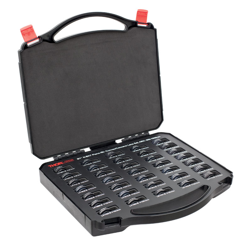 —LSB04-B - Набор сферических N-BK7 линз: плоско-выпуклые, плоско-вогнутые, двояковыпуклые и двояковогнутые, Ø1", просветляющее покрытие: 650-1050 нм, 35 шт, Thorlabs