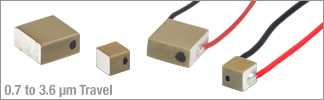 Пьезоэлектрические приводы Thorlabs изготавливаются из пластин керамического материала, на которых печатаются электроды, после чего пластины соединяют в многослойную структуру. Прецизионный процесс шлифовки обеспечивает отклонения значений высоты пьезоэлектрических элементов на уровне ±5 мкм. Полученная компактная многослойная структура обладает высокой резонансной частотой и суб-миллисекундным временем отклика.