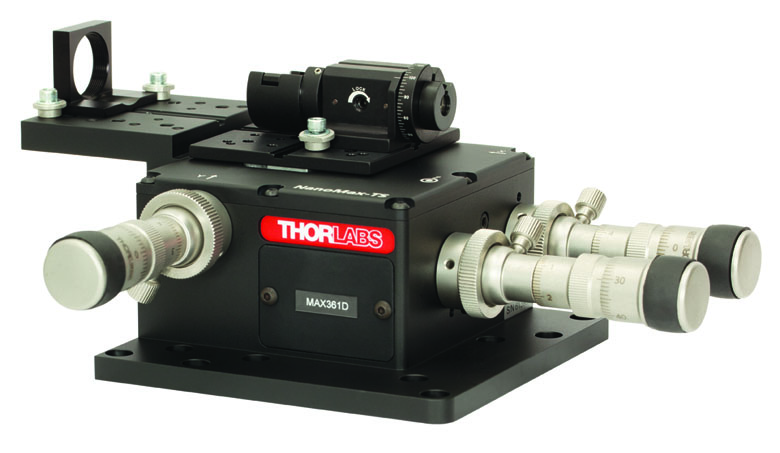 —MAX361D/M - Система для сопряжения источников излучения с оптоволокном на основе платформы MAX313D, вращающийся оптоволоконный держатель, для волокон, сохраняющих поляризацию излучения, метрическая резьба, Thorlabs