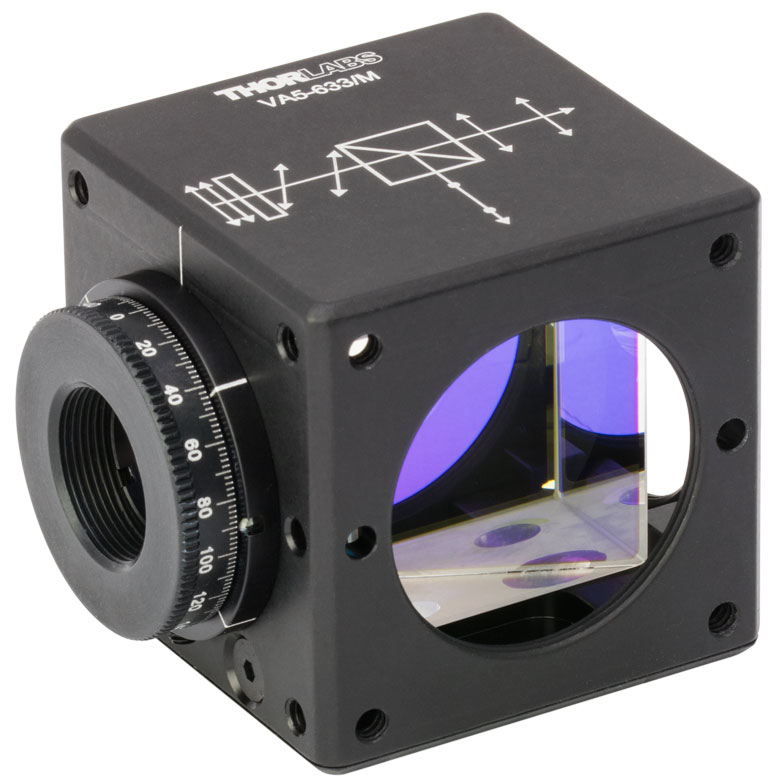 —VA5-633/M - Cветоделитель/аттенюатор с регулируемым коэффициентом деления мощности, рабочая длина волны: 633 нм, кубический корпус для интеграции в каркасные системы: 30 мм, крепления: M4, Thorlabs
