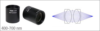 MAP1040100-A - Пары ахроматических дублетов, усиление: 1:2.5, f1=40 мм, f2=100 мм, просветляющее покрытие: 400-700 нм, Thorlabs